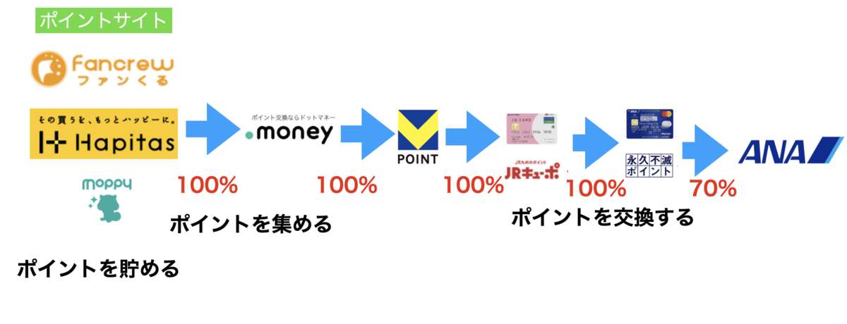 ハピタスやポイントタウン等のポイントサイトからドットマネーにポイント交換を行い、ドットマネーにおいて東急ポイントに交換して、それをANAマイルに交換するというルートでありました。